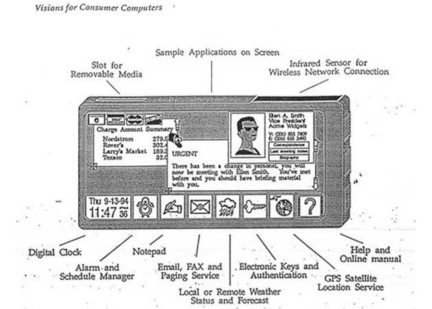 Eso sí, Myhrvold lo clavó en 1991, ya que guardando la distancias desde hace dos décadas (todo un mundo en tecnología), el diseño e interfaz de su cartera digital podría pasar perfectamente por unsmartphone actual.